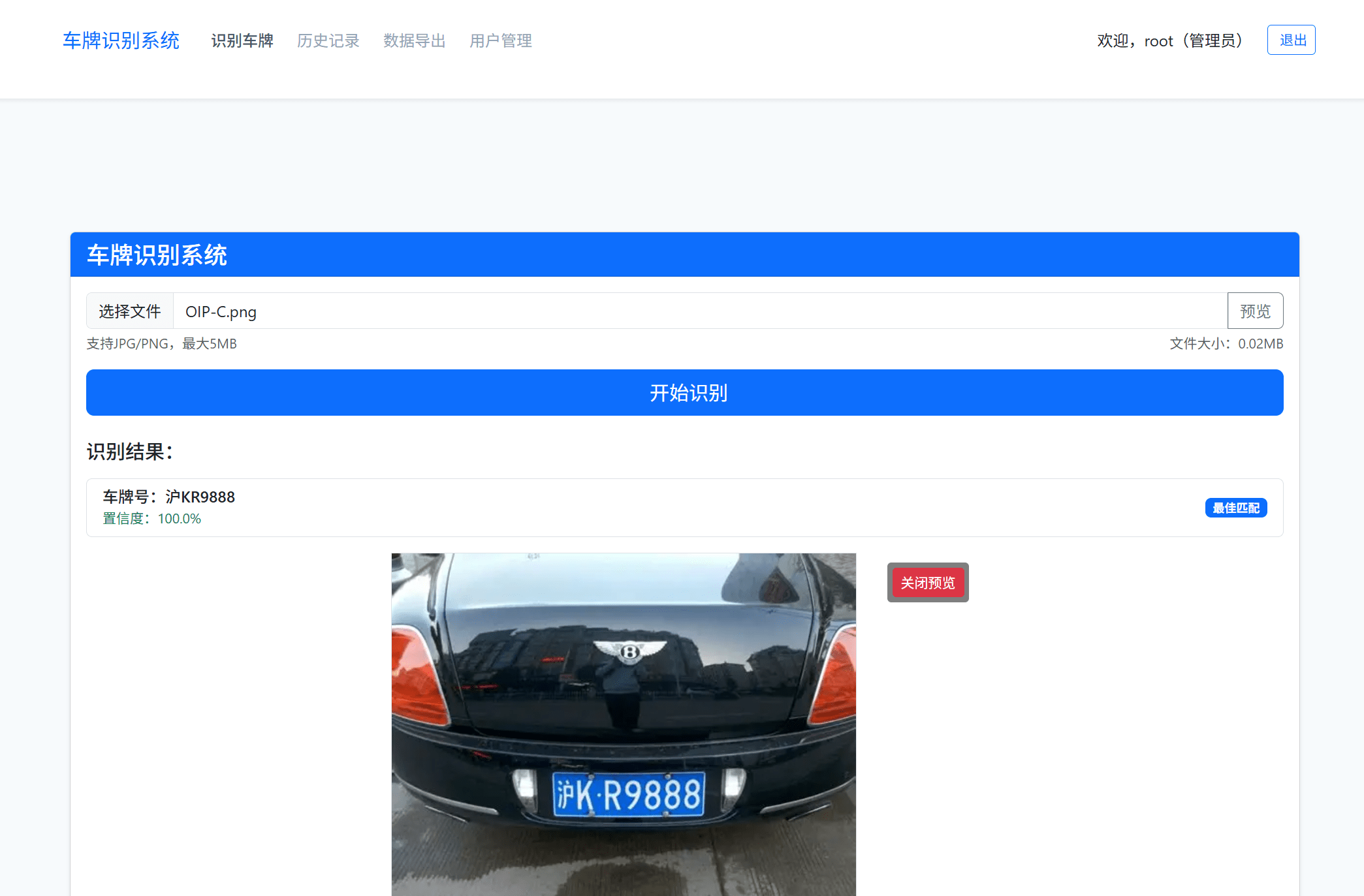 🌟 本系统为企业级解决方案,是一套功能强大、界面友好的智能车牌识别系统,基于Django框架开发,集成百度智能云OCR技术,支持停车场管理、交通执法、企业门禁等多种场景,具备高精度识别、完整用户管理、历史记录管理、数据导出等功能。